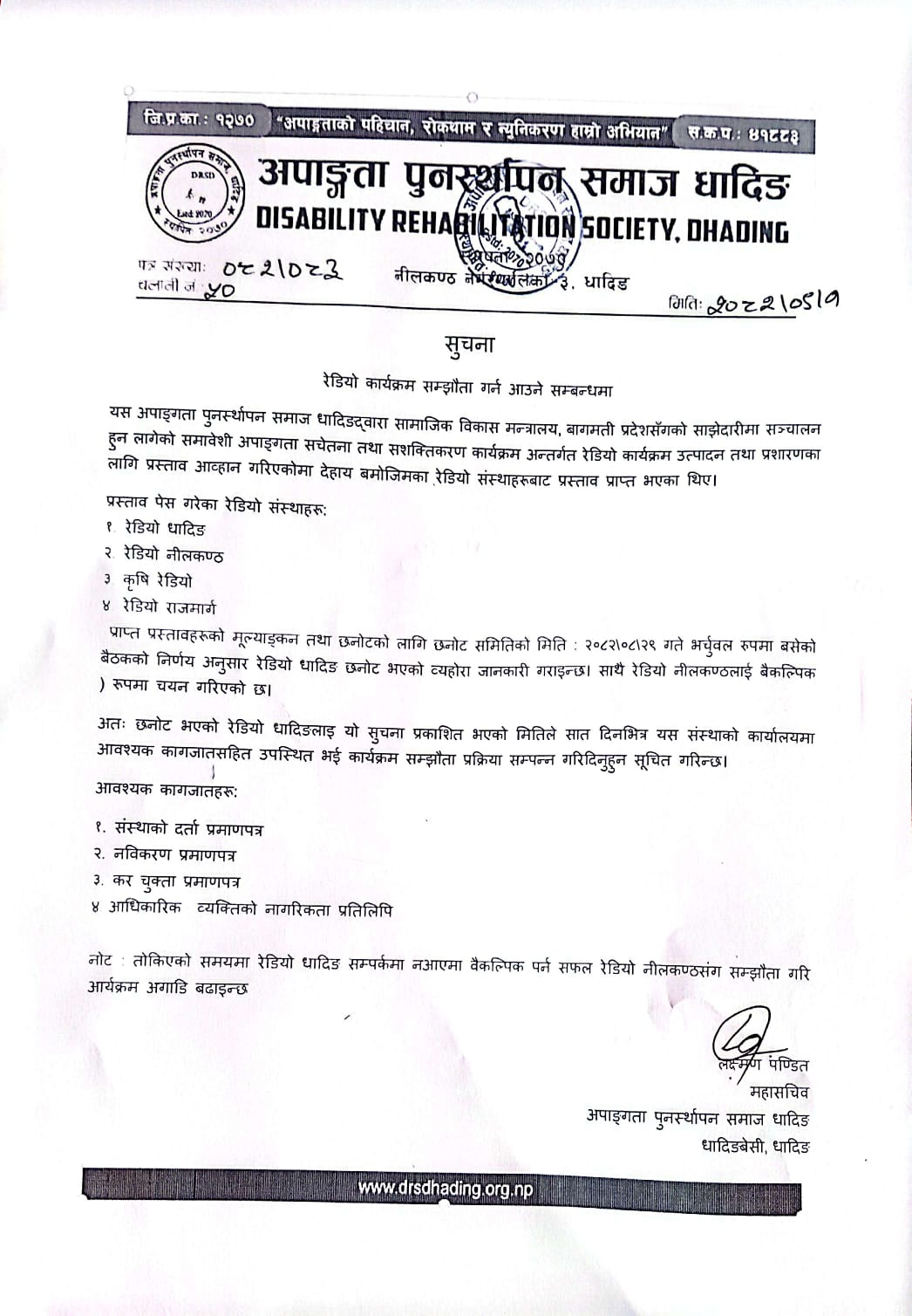 DownloadNotice Regarding the Call for Proposals for Radio Program Production and Broadcasting